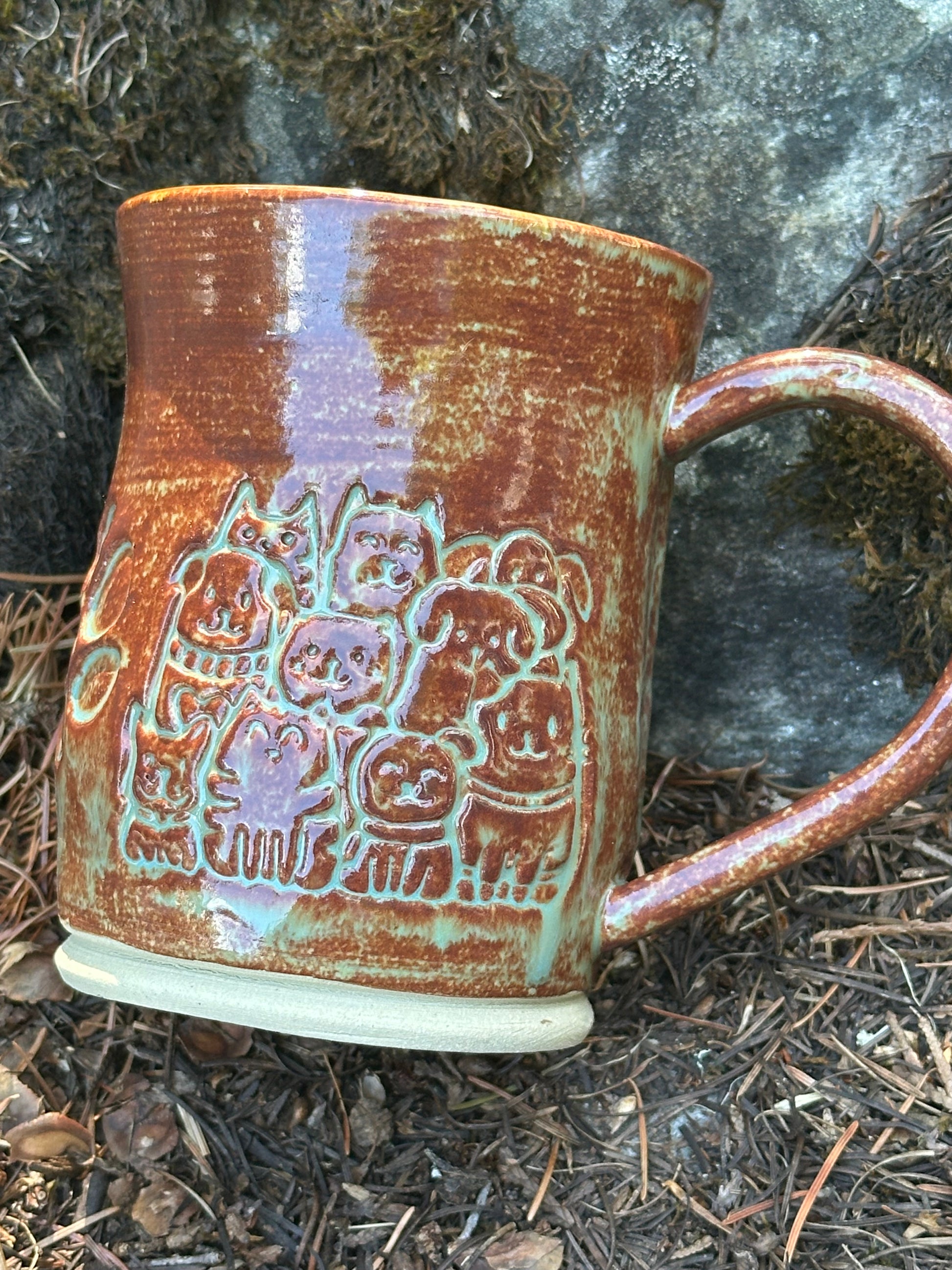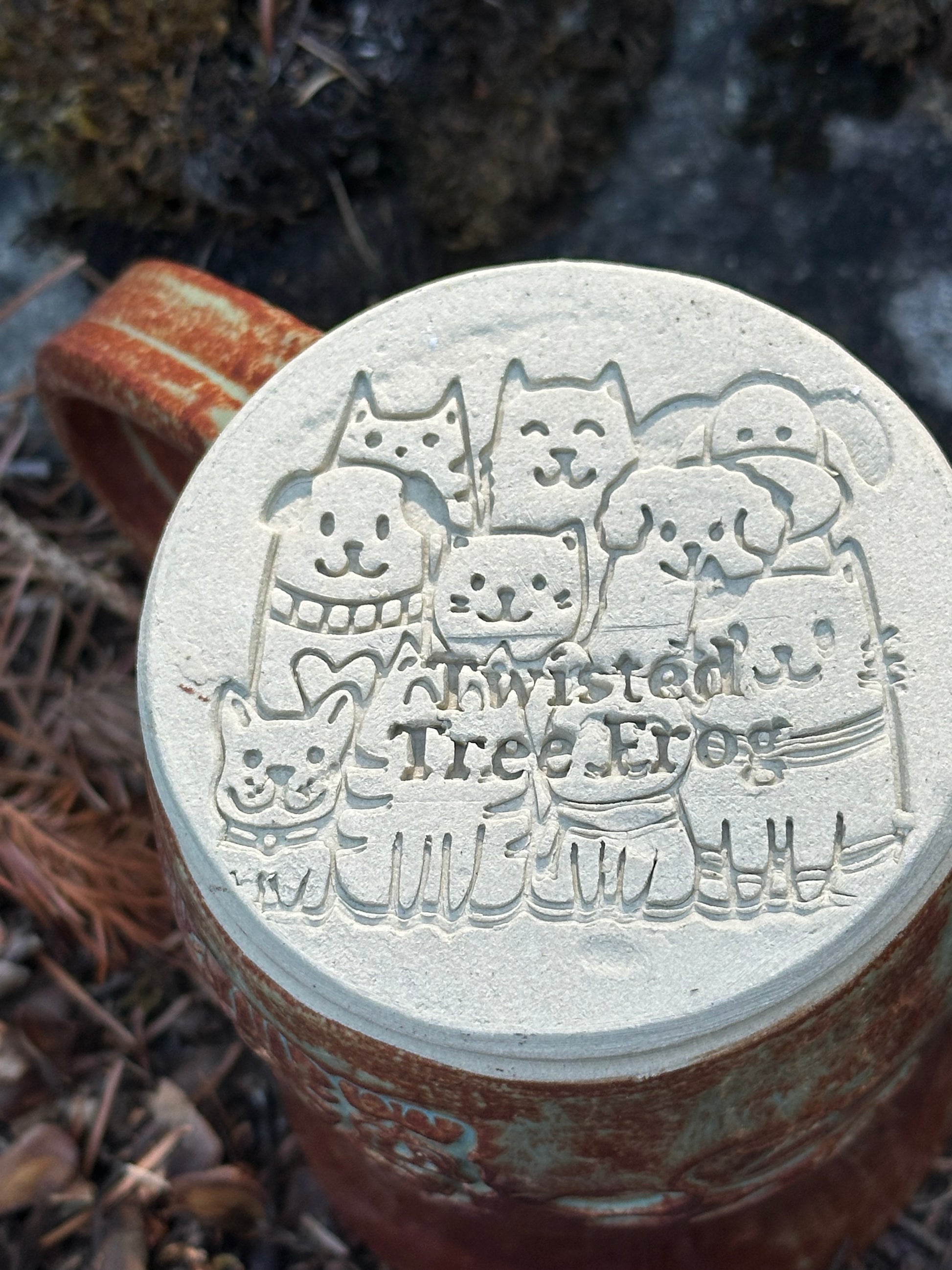 Brown with Green Furbaby Dog & Cat Pottery/Ceramic Mug approx. 16 oz. (250007)