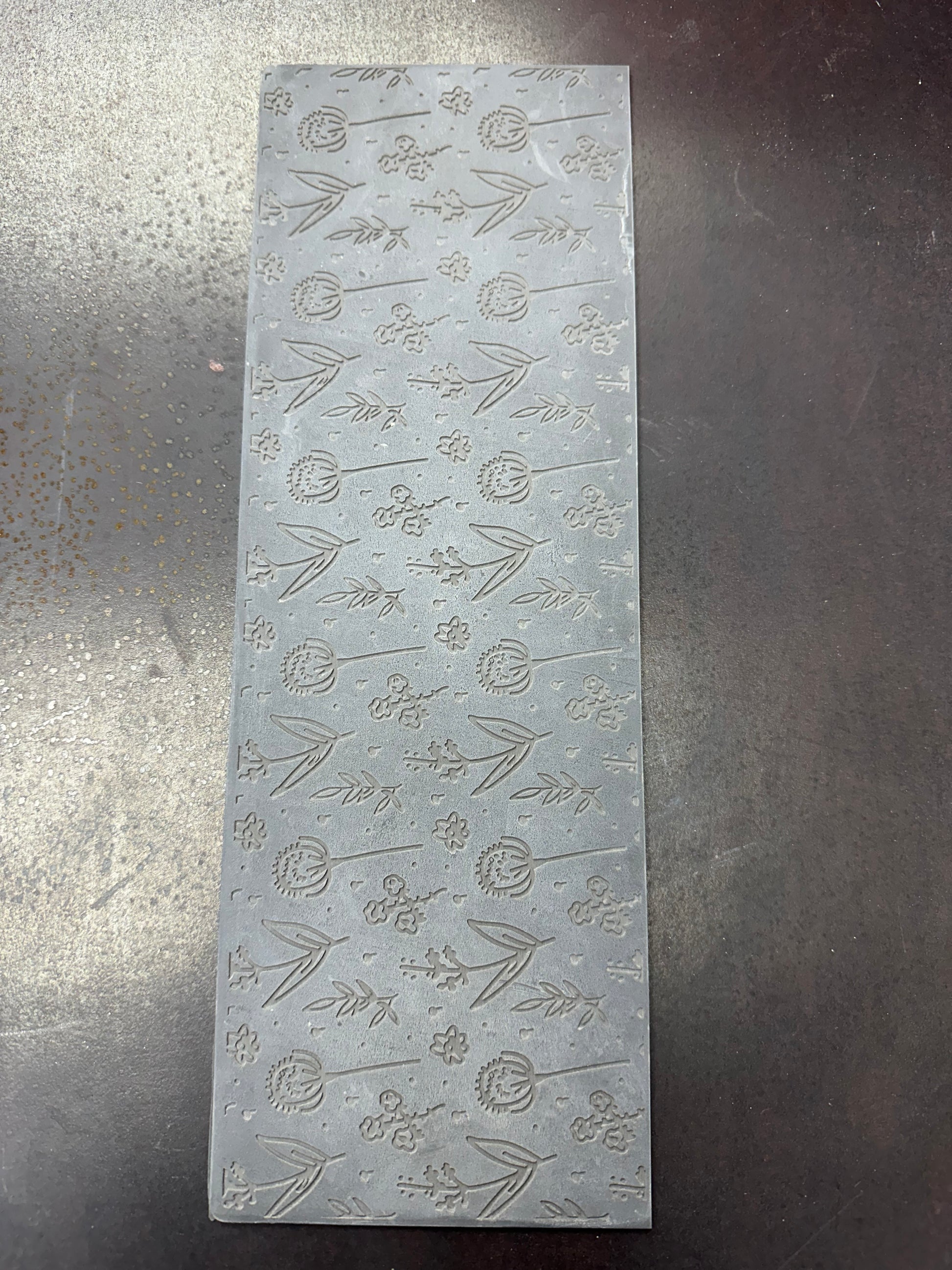 Introducing the Flowers in the Field 1 Rubber Texture Mat. Measuring approximately 4" x 12", this laser engraved mat enhances your crafting projects with a beautiful floral design. Perfect for adding texture and depth to a variety of surfaces, this mat is a must-have for any creative expert.