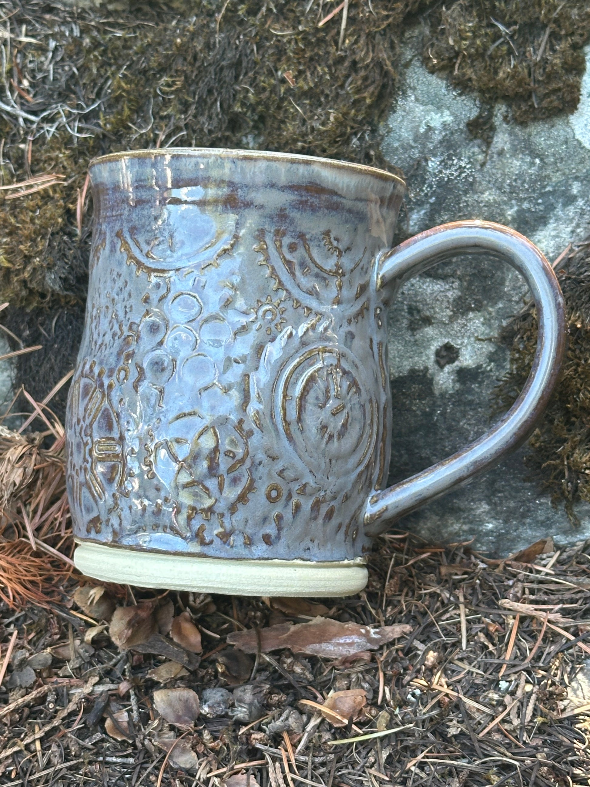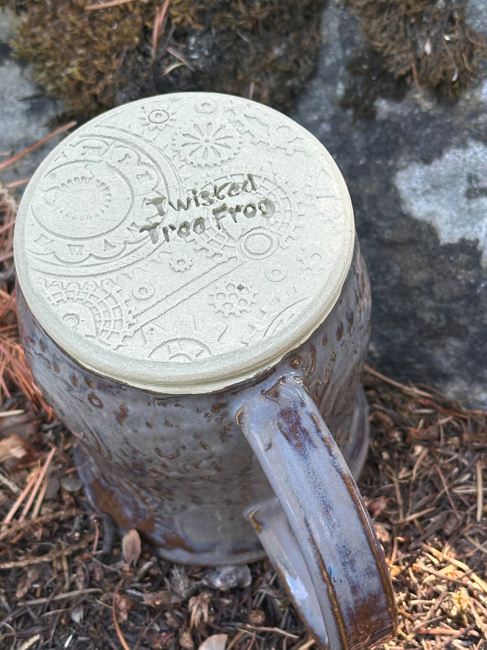 Gray Blue Steampunk Gear Pottery/Ceramic Mug approx. 16 oz (250001)