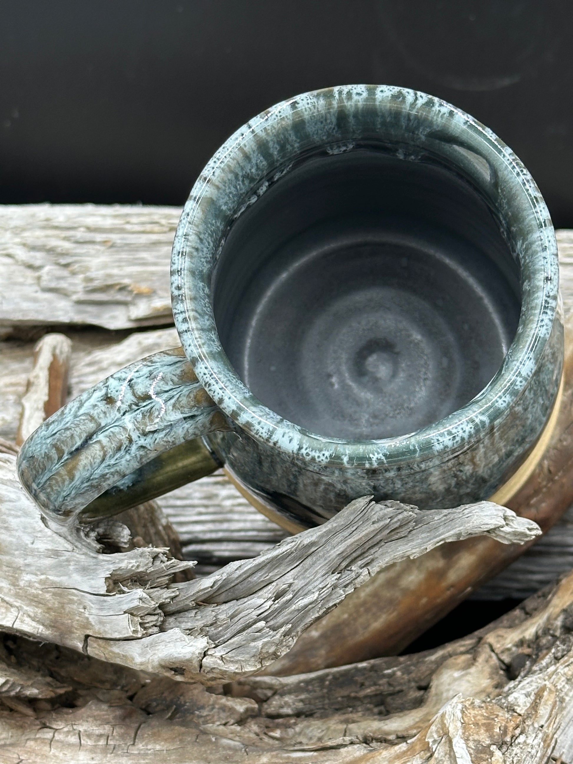 Gray green and marbled pottery tankard approximately 24 ounces (TS0103)