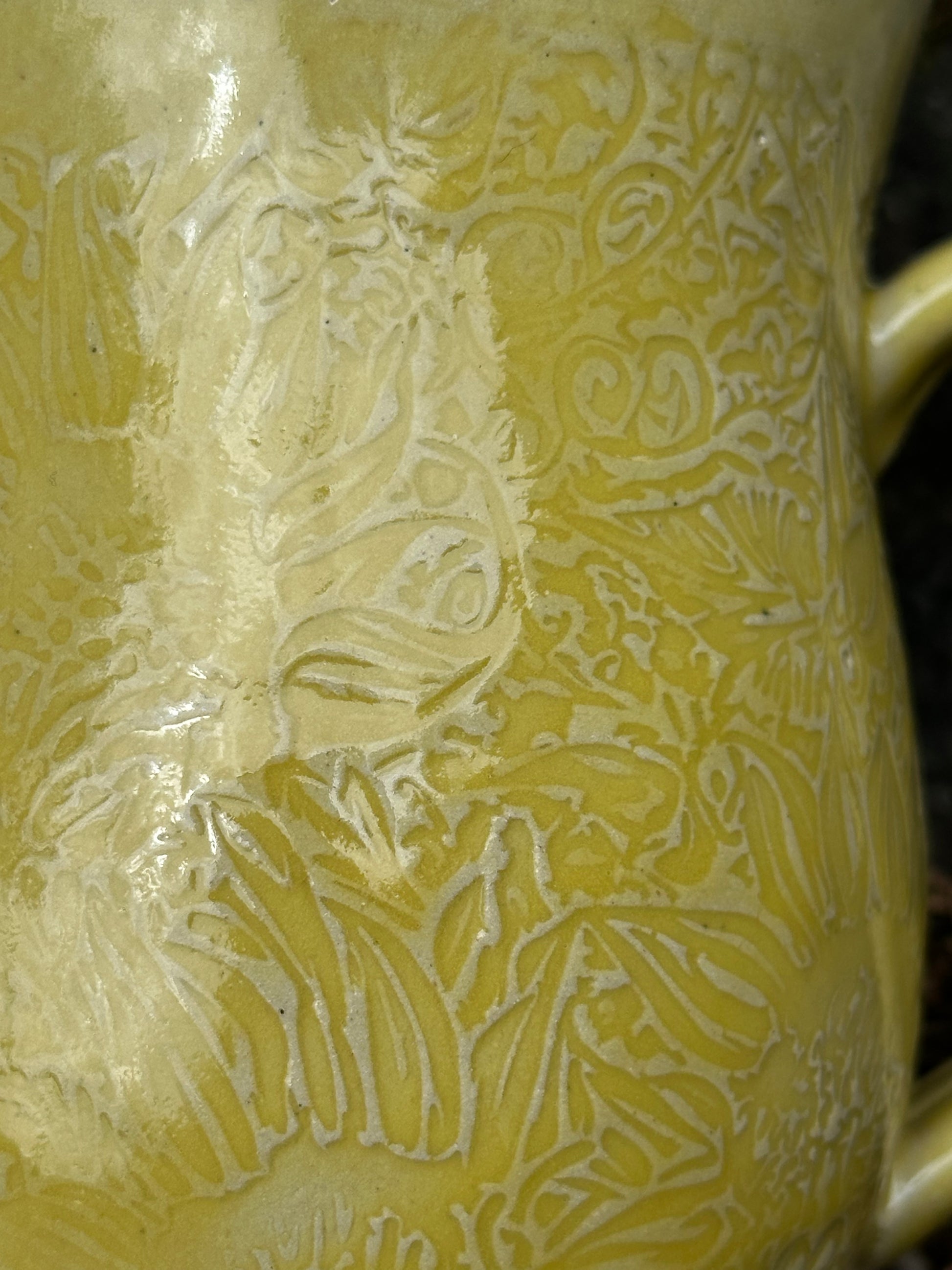 Handmade Pottery Mug with Subtle Sunflower Texture in Buttercup Yellow (approx. 16 ounces)