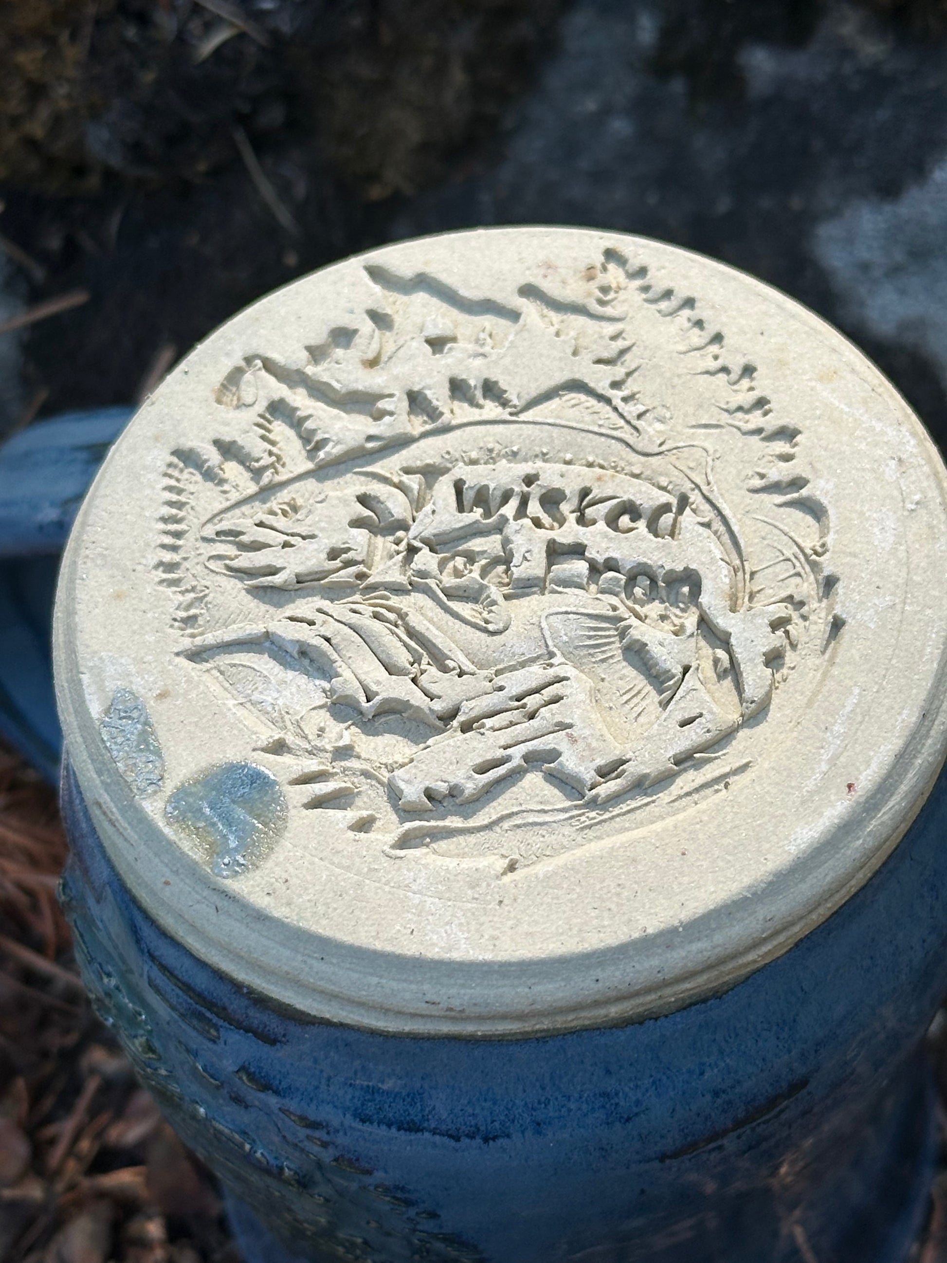Variegated Blue Trout Fish Jumping Pottery/Ceramic Mug approx. 16 oz. (250009)